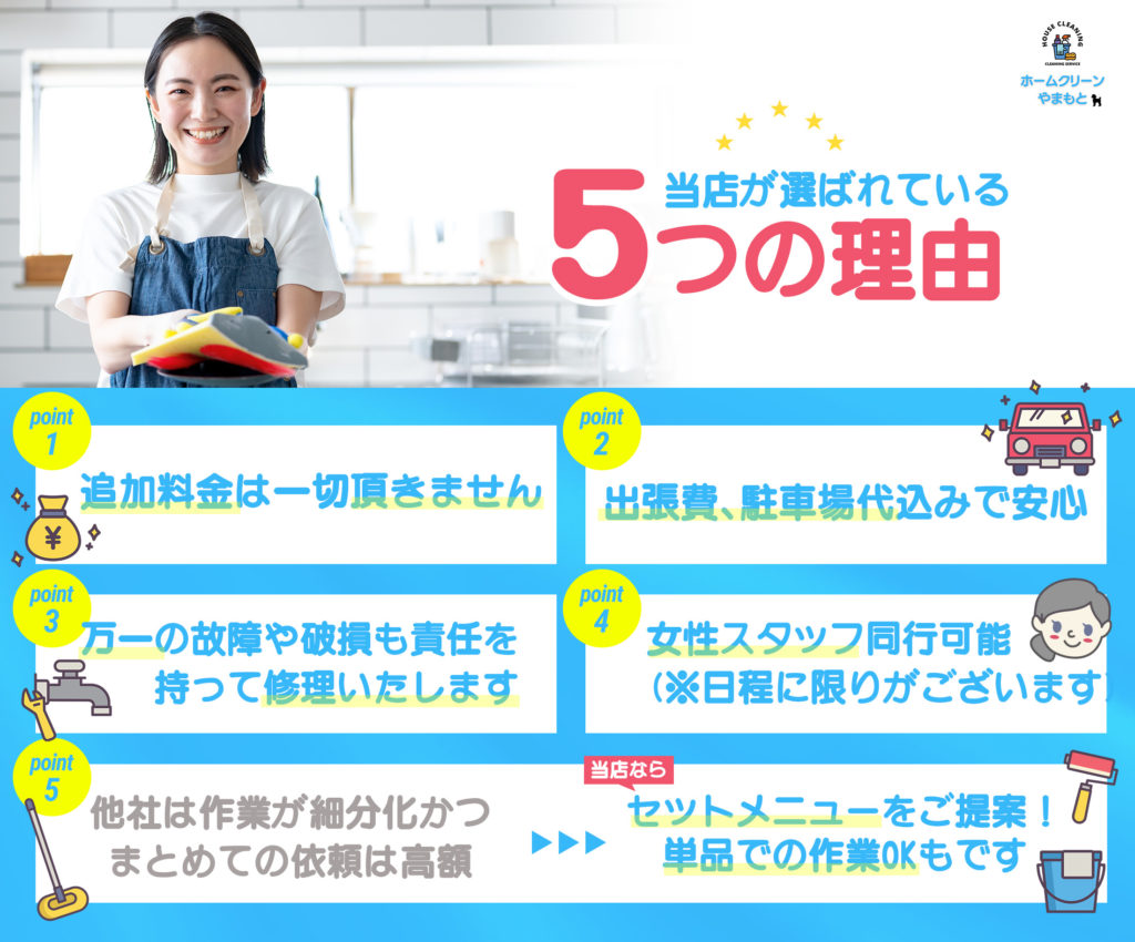 - 清掃作業完了後、スタッフへ代金をお支払いください。