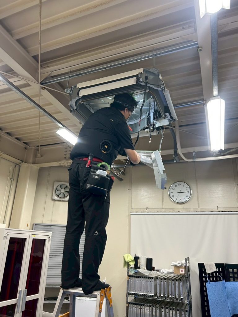 事前にエアコンの下部や作業箇所の備品を移動していただけると作業がスムーズに進みますのでご協力をお願い致します。